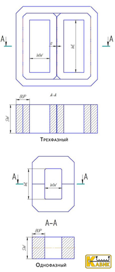 Для трехфазных сердечников необходимо дополнительно указывать